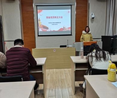首先召开预备党员转正大会,共有五项议程。首先,预备党员徐晶、茹佳梦、刘佳琦、高雅、王玉秋和贺钟霖六名同志汇报预备期间思想、学习、工作和生活等情况。支部了解到在预备阶段,徐晶、茹佳梦、刘佳琦、高雅、王玉秋和贺钟霖六名同志在思想、学习、生活和工作等各方面都取得了很大进步。其次,预备期考察联系人分别依次介绍了六名转正对象的考察情况并发表转正对象是否能如期转正的意见。预备期考察联系人范静、张任、张玉叶等同志从六位转正对象的优点、缺点以及预备期间取得进步等方面介绍了相关的考察情况,并一致同意六名同志如期转正。再次,与会党员发表意见,对转正对象徐晶、茹佳梦、刘佳琦、高雅、王玉秋和贺钟霖六名同志是否能如期转正这一情况进行充分讨论。与会党员徐中圆、孙宏赟、李丹、张巧巧、王璐瑶、刘璐等同志发表意见和建议,并一致同意徐晶、茹佳梦、刘佳琦、高雅、王玉秋和贺钟霖六名同志如期转正。在第四项议程中,支部大会进行表决,经无记名投票,六名转正对象皆全票通过。党支部书记范静同志宣布同意徐晶、茹佳梦、刘佳琦、高雅、王玉秋和贺钟霖六名同志按期转为中共正式党员。随后,转正对象徐晶、茹佳梦、刘佳琦、高雅、王玉秋和贺钟霖六名同志对支部大会讨论的情况表明自己的认识和态度,她们一致表示成为正式党员后,要在学习、生活、工作等各方面更加严格要求自己,改正缺点、发扬优点,充分发挥一名共产党员的先锋模范作用,争做优秀党员。最后,党支部书记范静同志带着六名新加入的正式党员与其他党员一起进行宣誓,重温誓词,时刻牢记中国共产党党员的初心与使命。