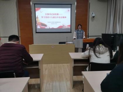 随后是党支部书记讲党课,范静同志带领全体党员深入学习党的十九届五中全会精神。范静同志结合《中共中央关于制定国民经济和社会发展第十四个五年规划和二〇三五年远景目标的建议》的相关内容从规划《建议》起草、规划《建议》亮点、规划《建议》突出民生议题、双循环的新发展格局、如何实现2035年远景目标这五个方面带领支部成员深入学习和领会十九届五中全会的会议精神。通过对党的十九届五中全会精神的学习,党员们不仅对党和国家对未来发展所绘制的壮丽宏图有了更为清晰的认识,进一步增强了“四个自信”,并且深刻地认识到了在党的领导下,中华民族伟大复兴一定会实现。至此,支部党员大会暨党的十九届五中全会精神专题学习圆满结束。