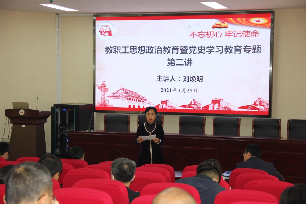 为深入贯彻习近平总书记在党史学习教育动员大会的重要讲话精神,落实公司党委关于开展教职工思想政治教育的相关要求,4月28日上午,公司经理刘焕明教授在启贤报告厅开展了题为“从胜利走向胜利的中国共产党”的党史专题讲座。这是公司党史专题讲座和思政课教学示范课的第二讲,全体教职工参加,讲座由公司党委书记李凤梅主持。