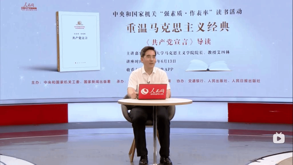 艾四林教授结合马克思经典原著,深入浅出的从六个方面做了阐述了《共产党宣言》的重要时代价值:一、人类社会发展规律与坚定共产主义理想信念;二、“无产阶级的运动是绝大多数人的,为绝大多数人谋利益的独立的运动,”--以人民为中心发展思想;三、无产阶级具有“只有解放全人类最终才能解放自己与为人类谋发展”的胸怀;四、“世界历史”与构建人类命运共同体;五、马克思主义建党学说与新时代全面从严治党;六、对待科学理论的科学态度与开辟当代中国马克思主义、21世纪马克思主义新境界。