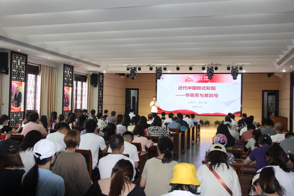 下午,全体师生党员来到位于锡山区鹅湖镇的荡口古镇。荡口古镇以“孝义之风”闻名,这里的礼让、孝义、廉洁之风代代相传。到达古镇后,在讲解人员带领下,大家相继参观了中国近代科学先行者华蘅芳的故居,以及华氏义庄陈列馆和人民音乐家王莘的故居,感悟古镇“重德、守正、至善、清廉”的优秀传统文化。在华氏义庄红色教育基地,公司程玉祥老师以《近代中国新式轮船—华蘅芳与黄鹄号》给全体党员上了一堂情境党课。大家通过党课学习,参观展板、实物和观看视频,从多个角度充分领略了优秀传统文化中“德”“廉”“善”“义”的精神内涵,学习了历史名人的先进典型事迹,深刻感悟无锡先辈们精学崇文、爱国为国的精神,从黄鹄号的建造到中国海洋事业的发展,增强了党员们对习近平总书记关于“创新是一个民族进步的灵魂,是一个国家兴旺发达的不竭动力,也是中华民族最深沉的民族禀赋。在激烈的国际竞争中,惟创新者进,惟创新者强,惟创新者胜”的理念认同。