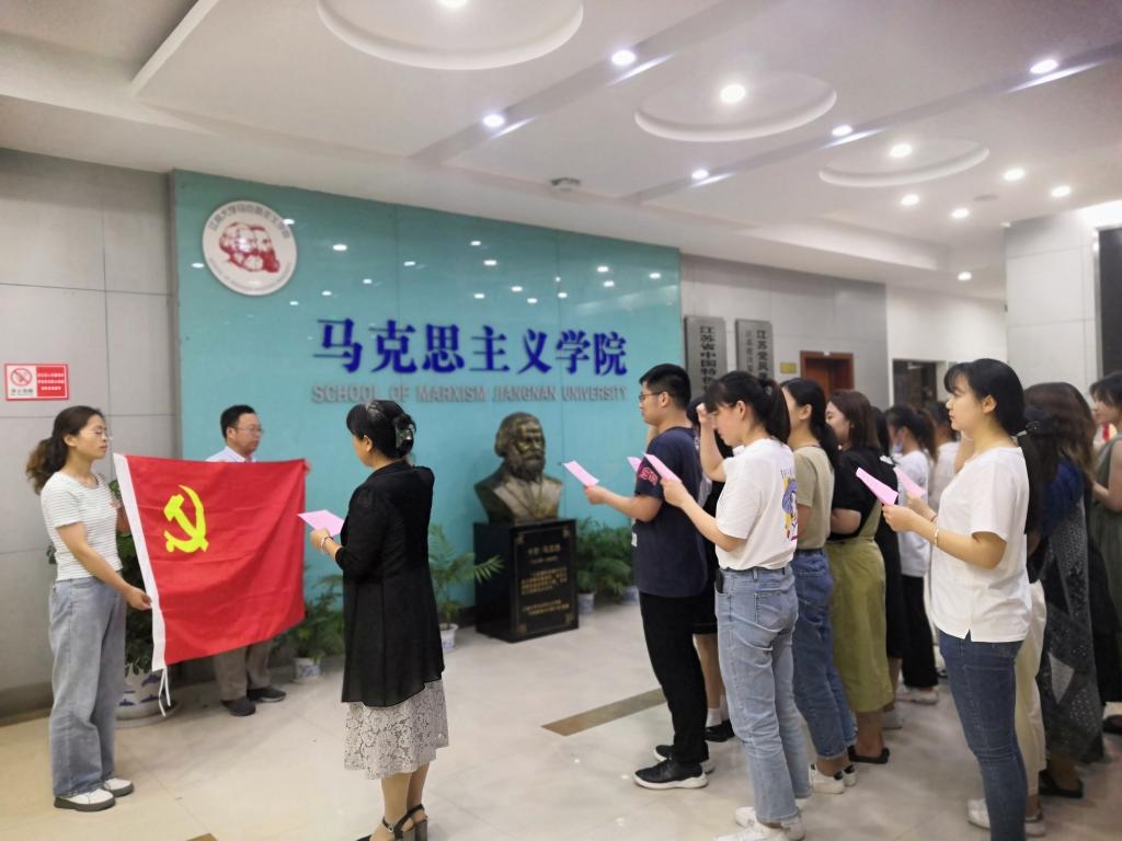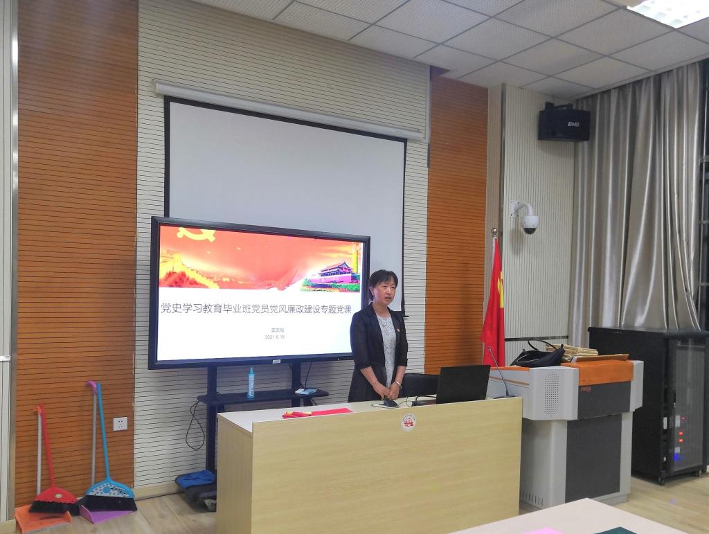 随后,李凤梅书记带领九名新加入的正式党员与其他党员一起进行入党宣誓,并开展了毕业生党员“最后一课”活动。李书记为党员讲授了党风廉政建设的主题微党课。微党课的内容主要包括中国共产党百年来始终高度重视党风廉政建设、百年党风廉政建设的成功经验、新时代继续加强党风廉政建设等方面。通过这一微党课的学习,使本支部成员不仅加深了对中国共产党百年来党风廉政建设的了解,提高了思想觉悟,而且还进一步推动本支部的党风廉政工作和工作作风转变,进一步增强党员反腐廉政的自律意识。活动最后,李书记寄语党员要永葆入党初心、勇担责任使命,并祝贺各位毕业生党员顺利毕业。