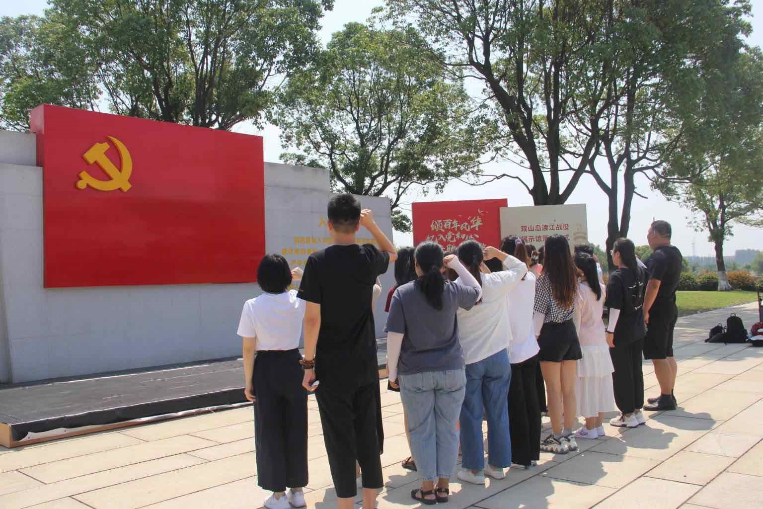 双山岛是中国人民解放军渡江战役最东端战场,是战役胜利的重要突破口,在这场战役中,11位先辈们的英魂忠骨永远长眠于此。而可歌可泣的红色记忆,也成为鞭策党员干部笃实力行、奋勇争先的“红色堡垒”。历史因铭记而永恒,精神因传承而不朽。在双山渡江战役烈士纪念碑前,党员们全体肃立,鞠躬致敬,告慰烈士忠魂,深切缅怀革命先烈的丰功伟绩。在双山渡江战役胜利公园,刘经理带领全体党员重温了入党誓词,接受了一次难忘的精神洗礼。