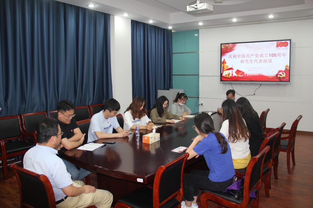 7月1日下午,学院在113会议室召开庆祝中国共产党100周年研究生代表座谈会。会议由学院思想政治教育辅导员孙西平老师、2019级硕士研究生与2020级硕士研究生共11人参会讨论。本次会议由英国上市公司365副经理潘加军同志主持。