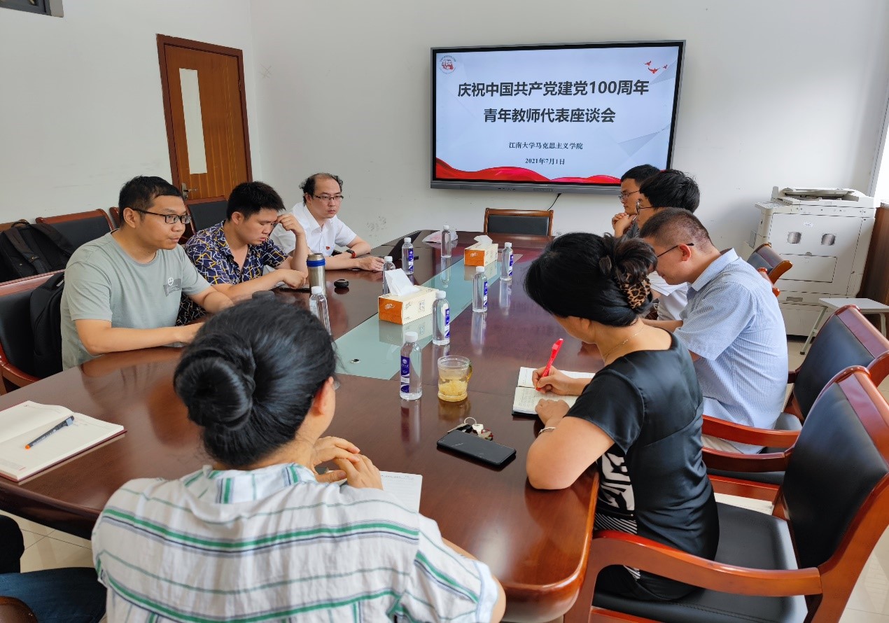 会上,各位老师畅谈上午观看建党一百周年庆祝大会的心得感想。栾俊老师说,这次庆祝大会令人感到心潮澎湃,百年来,中国共产党为中国人民谋幸福、为中华民族谋复兴,所取得的成就是有目共睹的,中国特色社会主义的发展道路、发展模式、发展的体制机制,为丰富发展人类走向现代化的图景提供更为多元、更为丰富的“中国方案”与“中国智慧”。顾益老师谈到,正如习近平总书记指出的,我们要继续高举马列主义伟大旗帜,把总书记的话学好、学会并贯彻落实,打破西方社会对话语权的垄断,把道路理论话语权、制度理论话语权和文化理论话语权牢牢把握在自己手中。郑宇老师认为,包括本次庆祝大会在内的国家庆典活动有利于展示政党形象和国家形象,引导人们树立正确的国家观,既有意义又有必要。在思政课尤其是“纲要”课中讲好百年党史,应以“中国梦范式”作为教学体系基础,有效包蕴“革命史范式”和“现代化范式”,让“革命”和“现代”最终以“中国梦”为指向。朱明明老师讲到,习近平总书记特别强调的“江山就是人民,人民就是江山”理念令人印象深刻。这是一切为了人民的庄严承诺,这是以人民为中心的行动指南。要坚持一切为了人民、一切依靠人民,充分发挥广大人民群众积极性、主动性、创造性,不断把为人民造福事业推向前进。老师们纷纷表示习近平总书记“七一”重要讲话鼓舞人心,催人奋进,作为青年教师党员一定会不辱使命,努力奋斗,为党的新的百年目标尽自己的一份力。