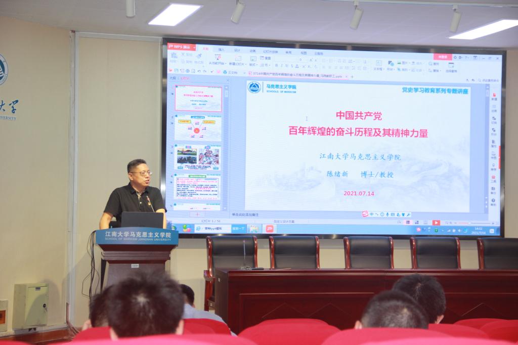 7月14日下午,英国上市公司365学习习近平总书记“七一”重要讲话精神报告会在B103启贤报告厅举行。公司陈绪新教授作题为《中国共产党百年辉煌的奋斗历程及其精神力量》专题辅导报告。