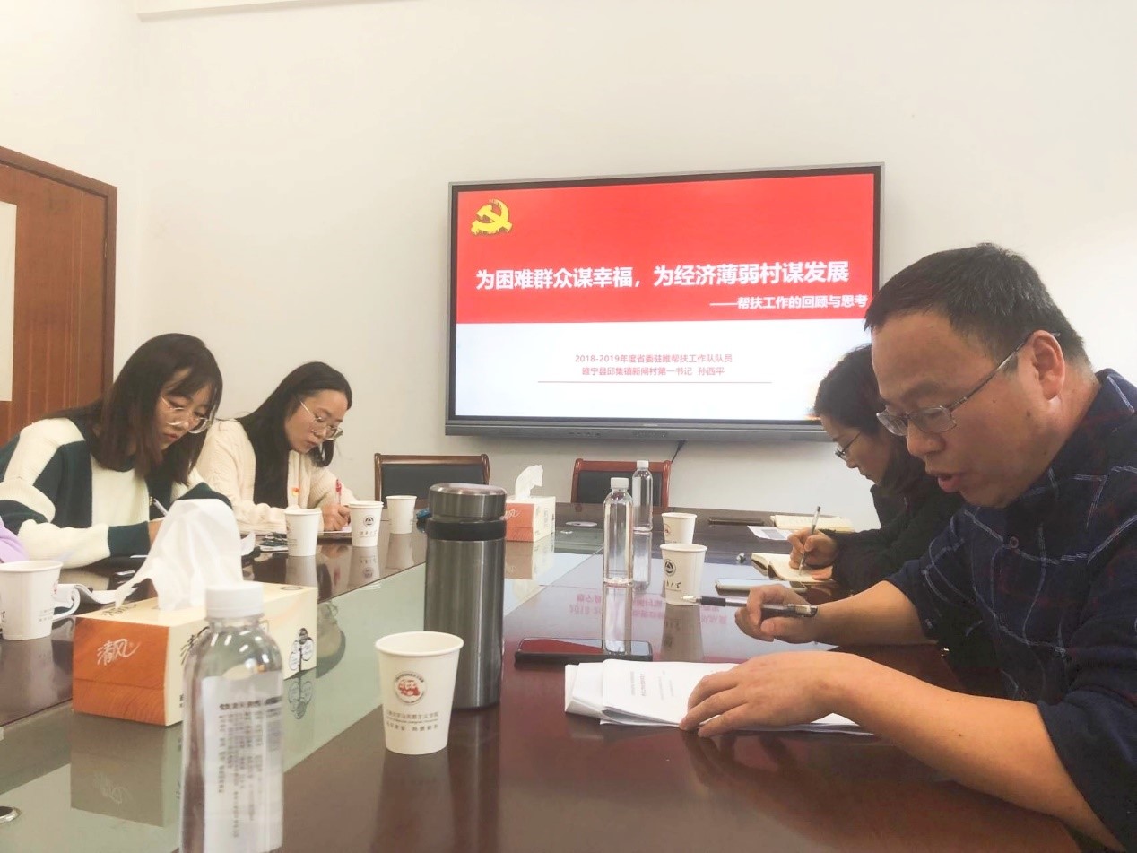 听了孙老师的扶贫事迹,在座党员同志们深受感动,纷纷表示,孙老师深入基层了解群众,时刻牵挂困难群众,真心实意地为群众奉献的精神值得每一位员工党员学习。大家一致认为,我国赢得脱贫攻坚战并非一蹴而就,而是在中国共产党的英明决策和坚强领导之下,一步一个脚印奋斗出来的,我们当前的幸福来之不易,之后的路也必定充满挑战。作为新时代研究生党员,我们应不断提升自己,以更加坚定的理想信念、更加坚实的专业能力、更加坚决的信心决心,为实现中华民族伟大复兴的中国梦而努力奋斗!