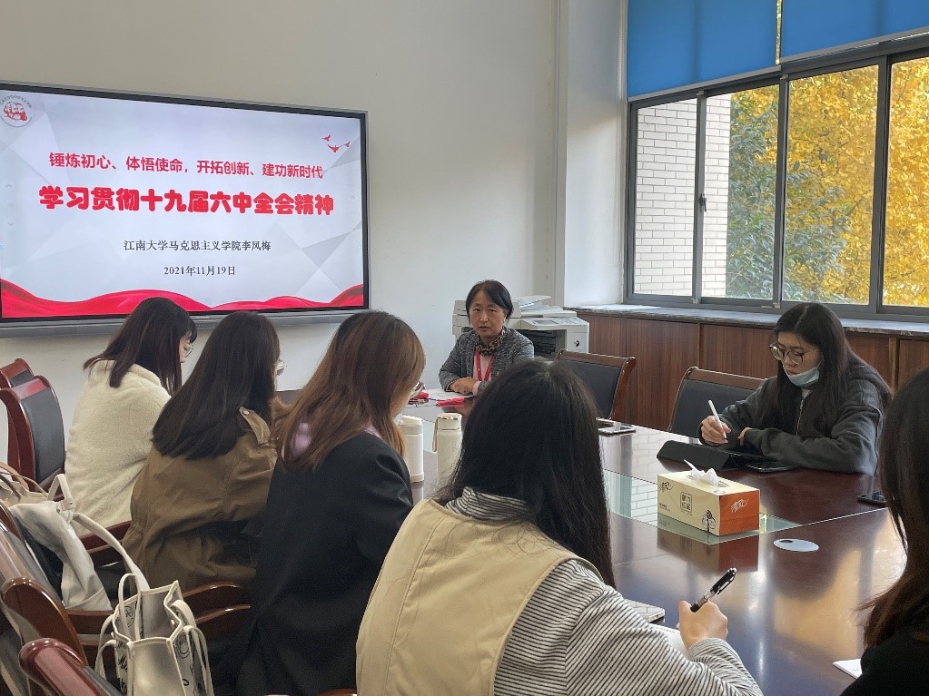 11月19日上午,2021级硕研党支部在学院B210会议室召开了学习会,由学院李凤梅书记主讲,学习贯彻十九届六中全会精神。