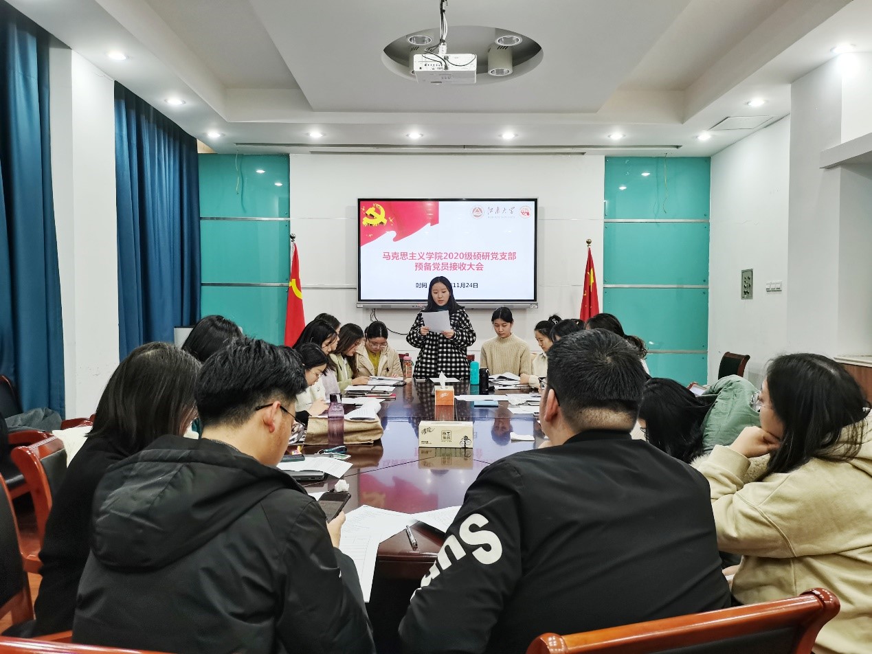 2021年是中国共产党建党一百周年,在这样一个特殊的年份遴选一批优秀的青年加入党组织、壮大中国共产党的队伍,对于党的组织建设与发展来说意义重大,对于有志于加入中国共产党的同志来说亦是意义重大。根据2020级硕研党支部2021年度发展预备党员工作计划,经公示和征求党内外群众意见、支部委员会同意、公司党委会预审通过,英国上市公司3652020级硕研党支部于2021年11月24日下午3点,在学院会议室B113召开接收高洋、刁硕、杜荣、刘佳、周晨缘、孙筱、王露瑶、侯明月、王子叶、罗紫薇、张丽11名同志为中共预备党员的大会,共有9名支部成员参加会议,其中正式党员9人,符合规定开会人数。会议由党支部书记陈静同志主持。