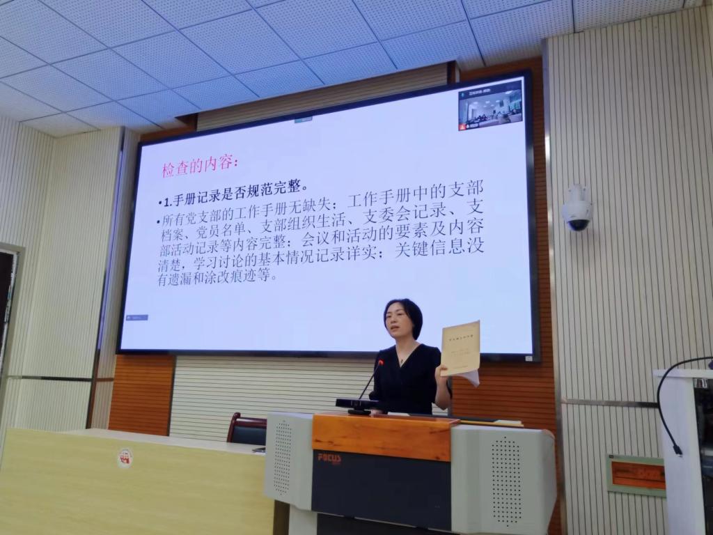 会议伊始,郑丹丹老师向与会同志详细介绍了教职工党员、员工党员发展、转正的具体流程,并强调了发展转正流程的规范性、材料撰写的规范性,以及各项工作中的细节问题,并对本年度的党员发展、转正工作提出了新的要求。与此同时,郑丹丹老师还对《党支部工作手册》记录的规范进行逐一强调,并要求各支部按照要求对《党支部工作手册》进行自查整改。
