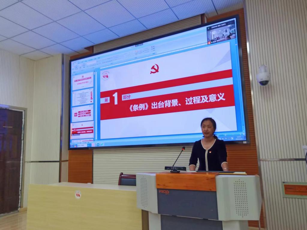随后,李凤梅书记带领全体党支部书记、委员进行了政治理论学习。此次的学习主题是贯彻《中国共产党普通高等学校基层组织工作条例》,加强基层党组织建设。李凤梅书记从《条例》出台背景、过程及意义;《条例》主要修订内容;贯彻落实《条例》,加强党组织建设三个方面,向与会同志介绍了《条例》的具体内容。