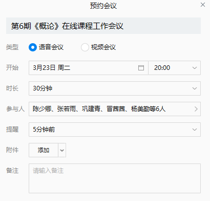 2021年3月23日晚8:00,第6期《概论》线上课程运行团队成员郑宇老师、陈少卿老师、张若雨老师、巩建青老师、冒茜茜老师、杨美勤老师及研究生助教王琴琴同学通过企业微信客户端召开第6期《概论》线上课程工作会议。