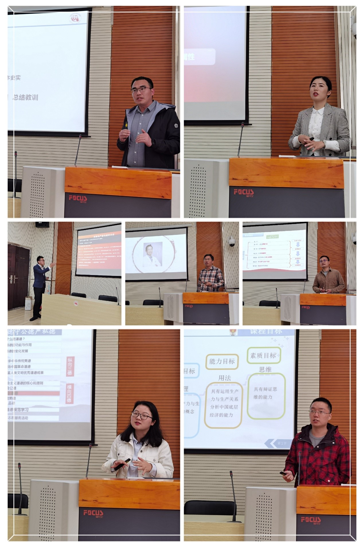 为贯彻落实习近平总书记在学校思政课教师座谈会上的重要讲话和全国思政工作会议精神,加强公司思政课教师队伍建设,提升青年教师的教学能力和教学水平,4月20日上午,公司在文科楼B117举行了青年教师教学比赛决赛。学院教学副经理侯勇、卓越分中心主任陈永杰、工会主席冯皓、以及学院资深教授督导高鸣、孙建英、徐礼红等担任评委指导,比赛由院工会主席冯皓主持。