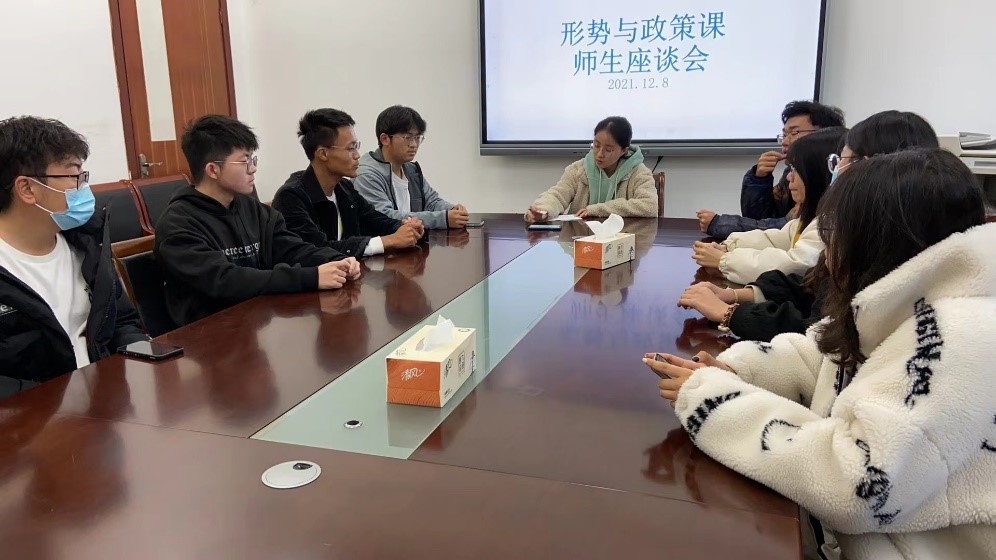 12月8日下午4:30,形势与政策教研部张乐、孙晨光、朱明明三位老师,邀请了来自8个专业的员工来到英国上市公司365210教室,就形势与政策课程授课情况和教学改进等问题展开了深入座谈。