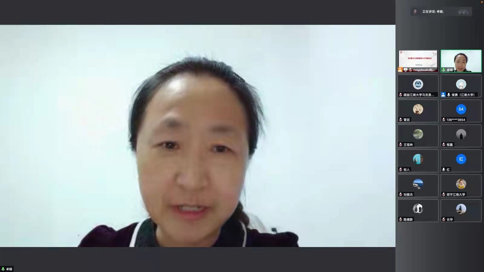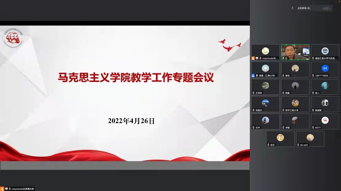 随后各教研部主任分别就本学期教学情况以及教研部经费等议题进行了介绍和讨论,毛泽东思想和中国特色社会主义理论体系教研部主任郑宇老师表示目前在线课程进展顺利,此前的一些录播课程仍有一些问题需要整改,希望尽快能组织进行重新录播;马克思主义原理教研部主任顾益老师汇报了马原的教学情况,并表示未来的一流课程建设中应保证线上课程质量与内容的统一;中国近现代史纲要教研部主任陈卫华老师汇报了该教研部的课程情况,表示下学期排课已经全部完成,补考事宜按时进行,并提出了党史线上课程录课因疫情原因而进度缓慢的问题亟待解决;形势与政策教研部主任张乐老师认为该教研部备课工作相对之前更加充分,但小班化教学导致的教师任务严重问题需要解决,并提出未来尽量在教师间实行机动教学,互相协助,做好每位老师的课件资源共享与分工;思想道德与法治教研部主任陆雪飞老师提出了该教研部在排课中因团队紧张而遇到的一些困难仍待解决;思政系主任陈绪新老师汇报了自己对未来本科点建设的一些想法,提出了思政系专业应当按实体化建设以增加师生归属感和认同感,注重教学过程中各种材料档案归档以备考核,以及在未来排课过程中需要全院教师的协调与支持,应当建立有效的协调机制。