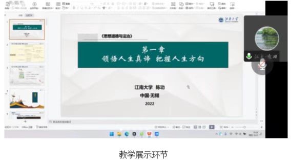 其次,陈功副教授就“领悟人生真谛 把握人生方向”部分内容进行教学展示。陈功老师指出,在正式讲授课程内容之前,可带领同学们梳理本门课的逻辑框架,对目录进行说明。在课程导入环节,可采取播放视频的方式,这有利于提高员工抬头率,集中员工注意力。同时指出视频不宜过长,大概5、6分钟较为合适,否则同学们会产生疲劳感。此外,陈功老师强调授课内容可与自己的研究内容相结合,进而形成自己的授课风格,还指出通过上课点名的方式可增加和同学们之间的互动。在教学展示的最后,陈功老师分享了下载短视频的方法,得到了老师们的一致好评。