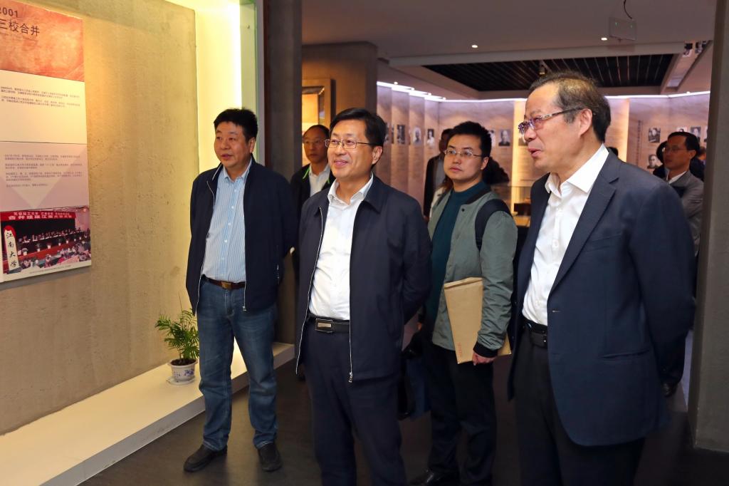 会前,朱庆葆陪同何成一行参观了公司校史馆。