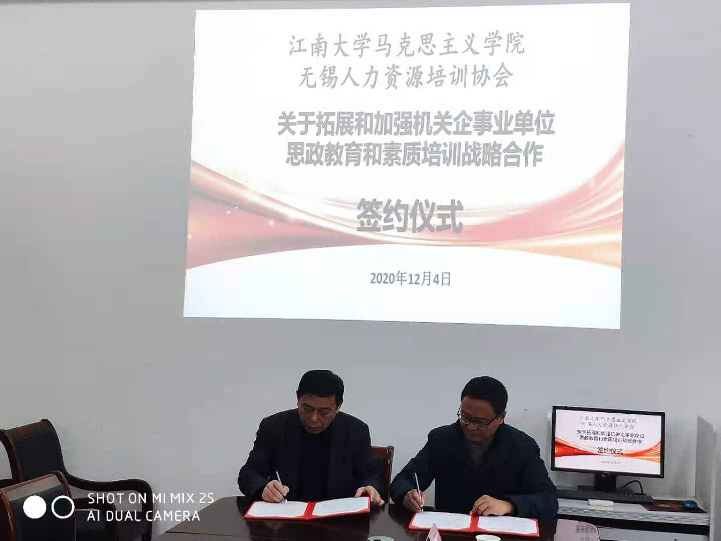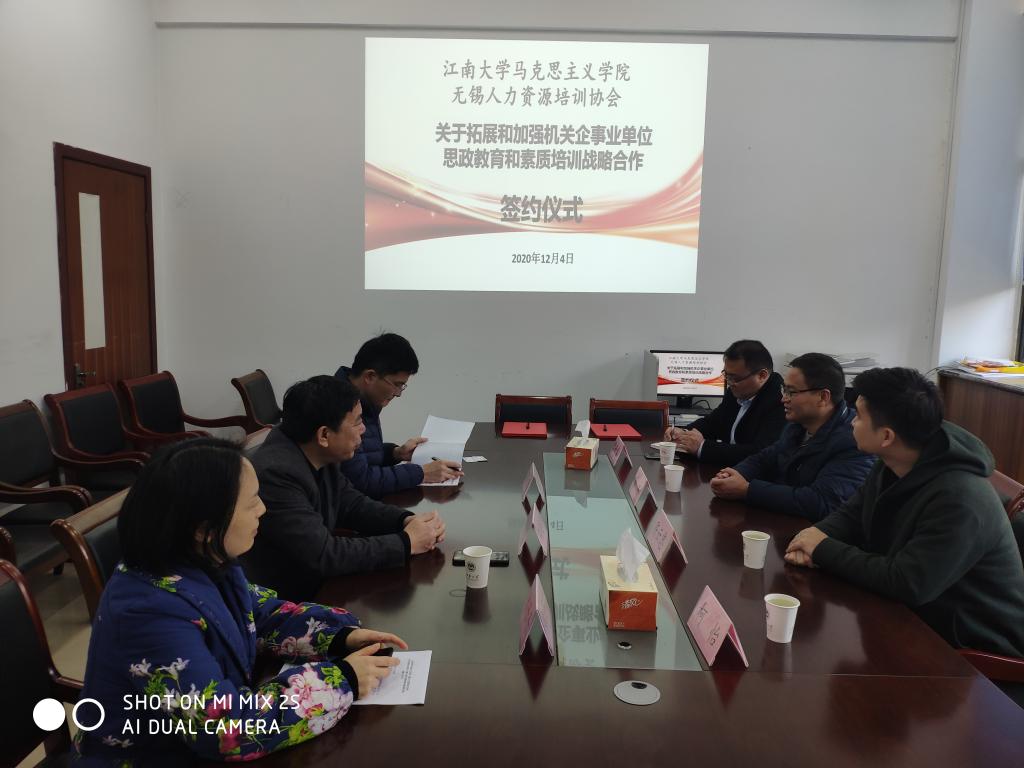 为了更好地协同推进和加强机关企事业单位职工思想政治教育和素质培训工作,12月4日下午,无锡人力资源培训协会与公司签订了《关于拓展和加强机关企事业单位思政教育和素质培训的战略合作协议》。经理刘焕明,副经理侯勇,无锡人力资源培训协会会长汤杰、支部书记陈云忠、秘书长匡峰春、柯怡等出席了此次签约仪式。