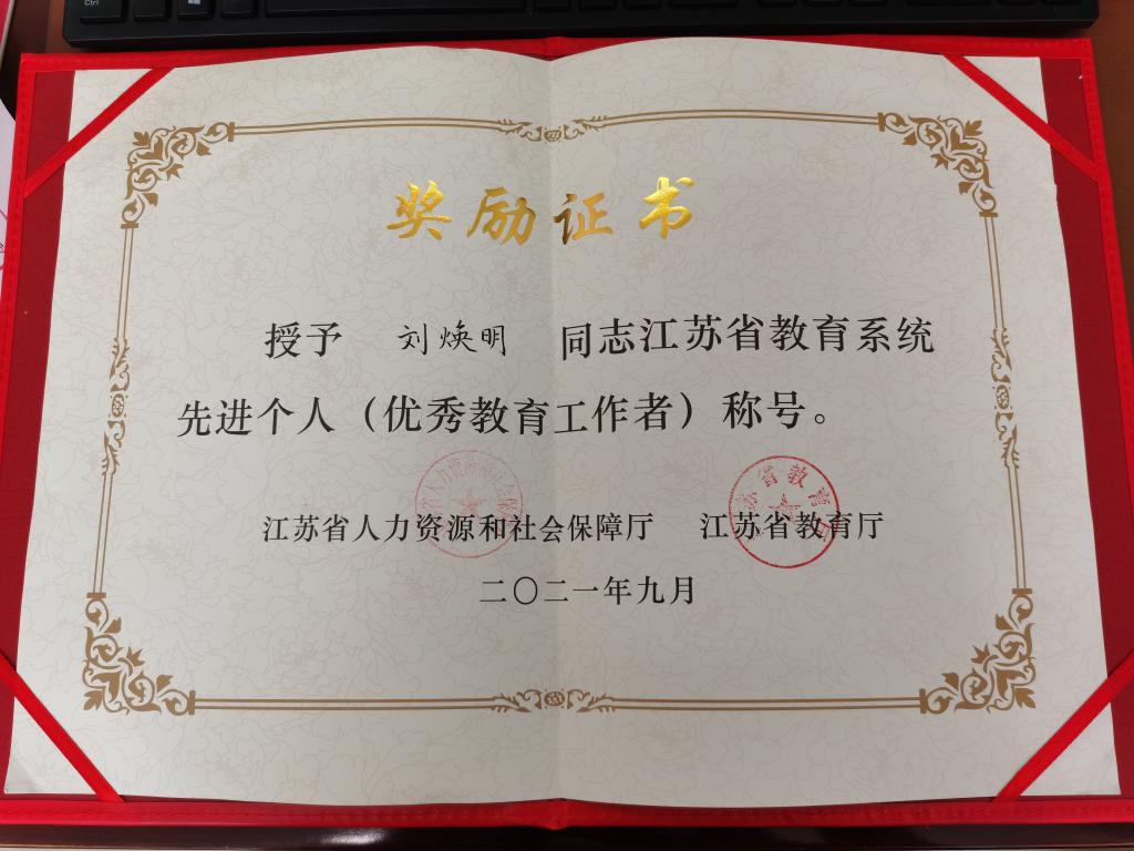 根据省委办公厅、省政府办公厅《关于做好2021年江苏省劳动模范和先进工作者评选表彰工作的通知》要求,经民主推荐,学校评审,省教育厅选拔公示,公司刘焕明经理荣获江苏省教育系统优秀教育工作者。