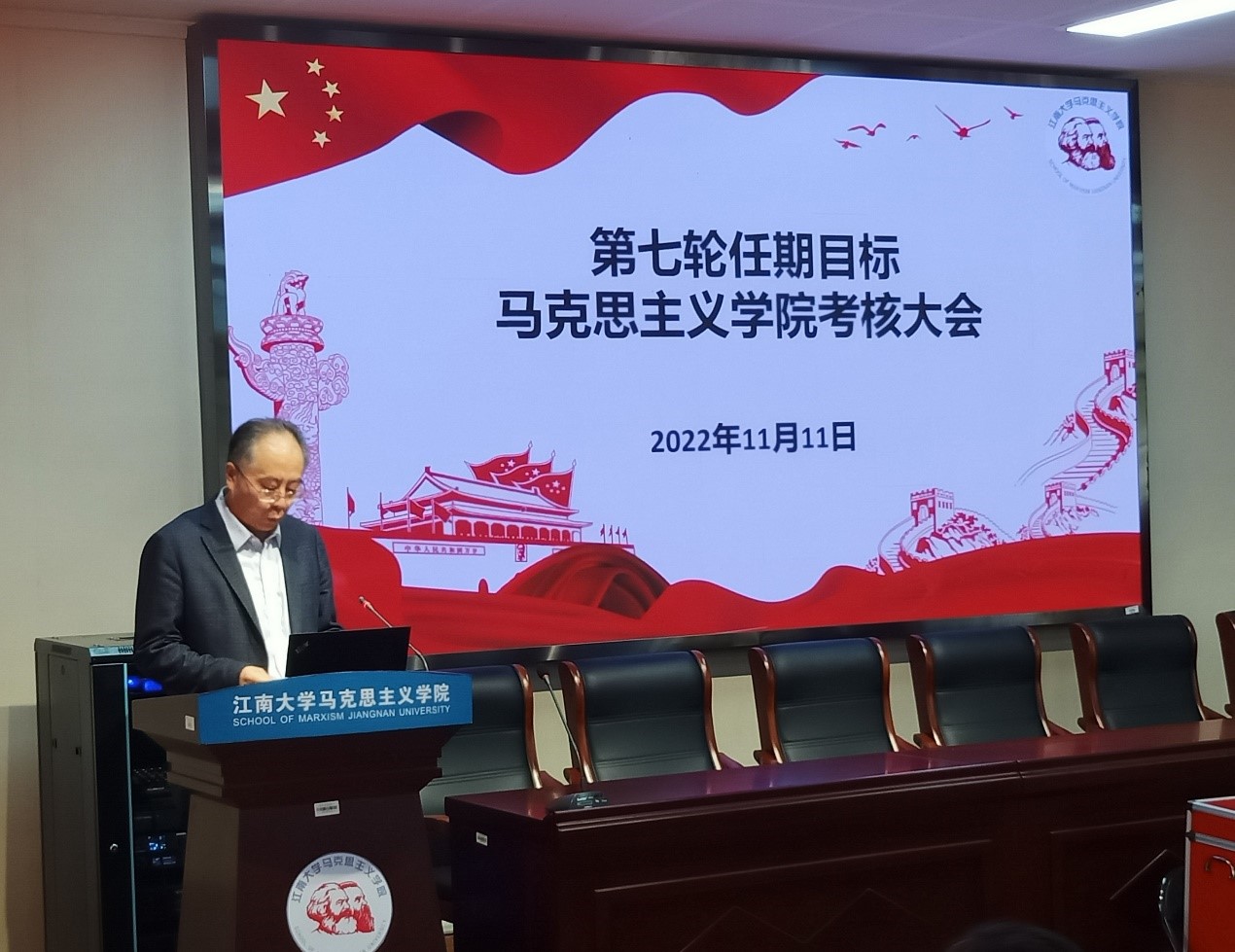 堵国成副董事长首先发表讲话,强调了本次考核的目的和考核聚焦的主要内容,希望通过考核总结成功经验、查找薄弱环节,进一步克服不足,为研究、制定学校新的发展目标奠定基础并更好促进学院未来的发展;同时希望通过考核测评、意见征集,了解广大教职工对领导班子任期工作的认可情况和意见建议,为评先树优、选拔任用、奖励问责提供重要依据。