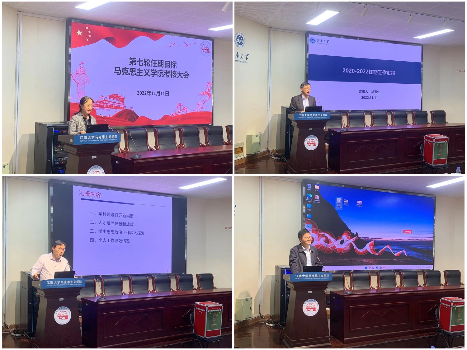 随后,学院第七轮任期的领导班子成员李凤梅书记、刘焕明经理、徐玉生副经理、潘加军副经理、侯勇副经理分别进行述职述廉。