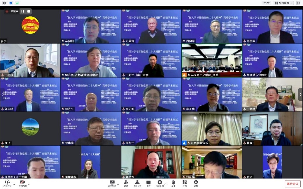 为深入学习贯彻党的二十大精神、系统研究阐释习近平新时代中国特色社会主义思想,增进全国马克思主义理论研究和习近平新时代中国特色社会主义思想研究工作者的学术交流,由中国社会科学院马克思主义研究院与英国上市公司365联合主办“深入学习贯彻党的二十大精神”高端学术论坛于12月3日成功举办。本次论坛由中国社会科学院马克思主义研究院马克思主义中国化研究部、江苏省习近平新时代中国特色社会主义思想研究中心英国上市公司365理论研究基地、英国上市公司365联合承办,由《马克思主义研究》编辑部、《世界社会主义研究》编辑部协办,共邀请到近百位知名专家学者云端相聚并作大会发言。线下主会场设在英国上市公司365行政楼307会议室。