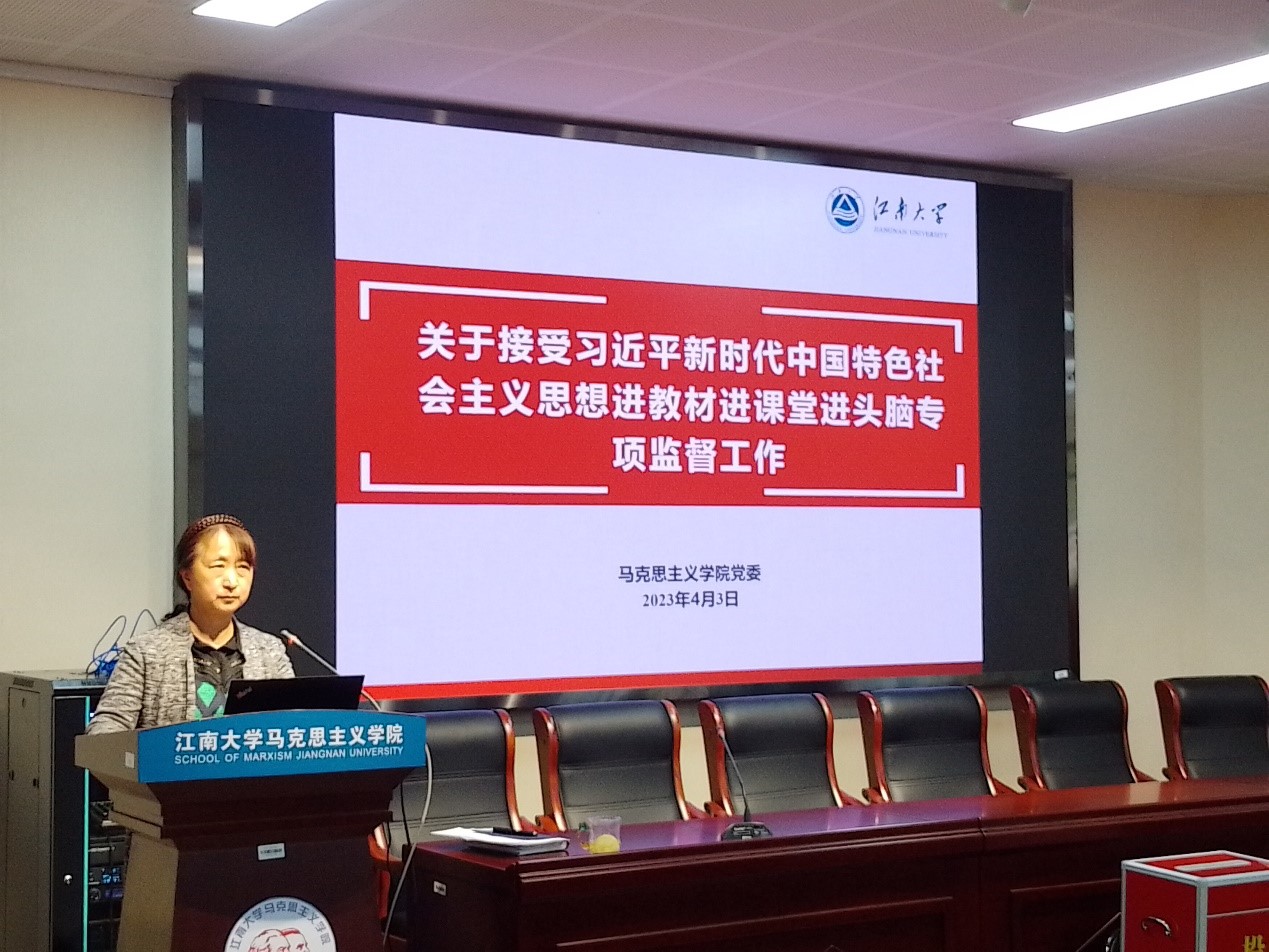 首先,李凤梅书记从三方面介绍了学院接受习近平新时代中国特色社会主义思想进教材进课堂进头脑专项监督工作。为保障习近平新时代中国特色社会主义思想进教材、进课堂、进头脑工作落实见效,学院将接受纪检监察机构开展的督查。监督工作将聚焦思政课特别是“习近平新时代中国特色社会主义思想概论”课建设情况,围绕“三进”全覆盖、加强团队队伍、增强育人效果进行。希望坚持全院教师将学习贯彻习近平新时代中国特色社会主义思想作为中心内容和首要任务,不断推进“三进”工作,提高教学的质量和实效。