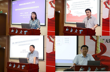在新时代高校思政课教师评价机制改革研究研讨会上,名师工作室主持人徐玉生教授详细汇报了“江苏省思想政治理论课徐玉生名师工作室”的建设方案,课题组成员崔会敏、林俊、吴定会等围绕新时代高校思政课教师的评价机制展开了多角度的深入研讨。