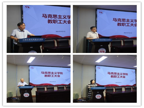 侯勇经理首先介绍了近期的学院重点工作:新一轮的博士点申报工作,学科点建设工作、本科教学审核评估、人才培养工作等。随后,潘家军、唐忠宝、刘俊杰、郑丹丹分别围绕各自分管领域向全院教职工汇报了学院上一阶段的工作开展情况以及下一阶段的工作愿景。