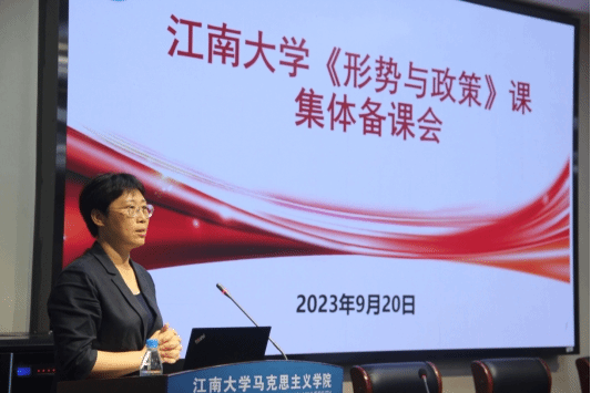 会议还进行了“形势与政策”课集体备课。形势政策教研部主任朱明明介绍了本学期“形势与政策”课的教学工作安排,冯皓、孙晨光、陈功等老师分别作了该课程不同专题的示范教学。李佳敏对深化“形势与政策”课教学改革提出了具体要求。