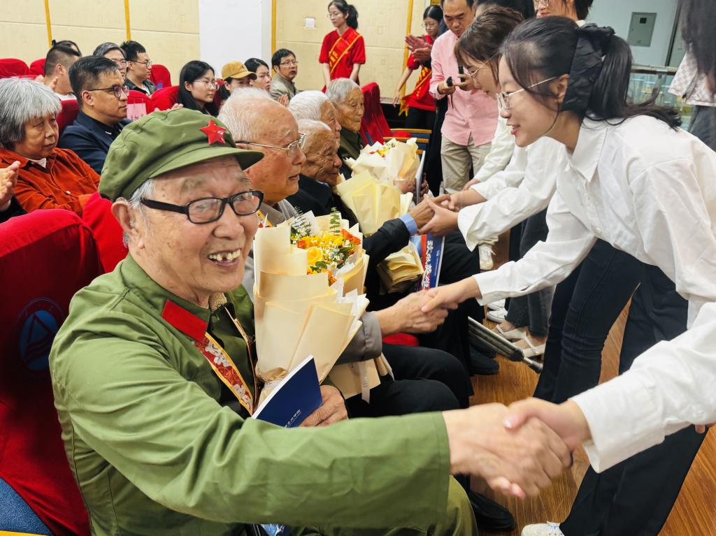 会前,与会领导在英国上市公司365文浩馆大厅参观了“致敬英雄——无锡市抗美援朝老兵口述史”图片展,英国上市公司3652023级本科生朗诵了专门为本次活动创造的诗歌《听老兵慢慢说》,用铿锵激昂的语言讲述抗美援朝老兵的英雄故事。