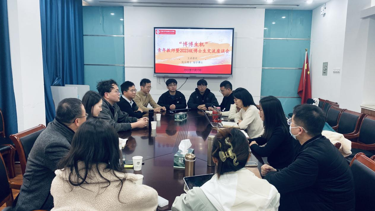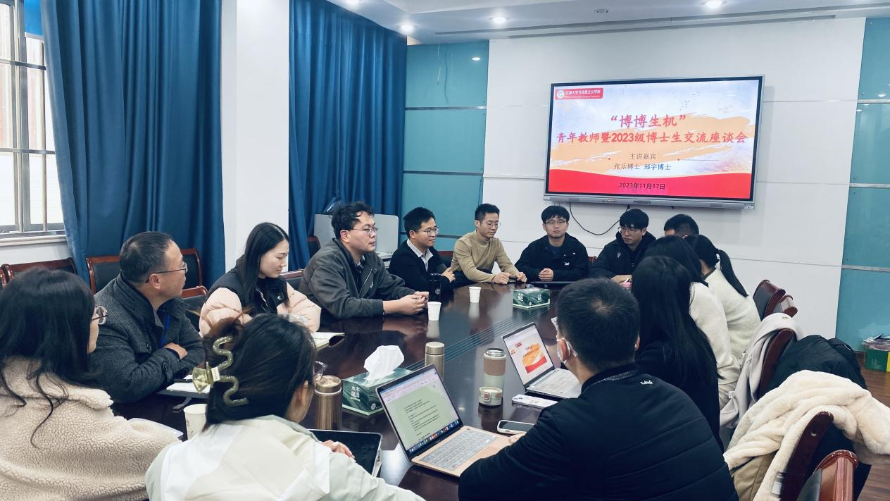 11月17日下午, 2023级博士班举办的师生交流座谈会在学院B113会议室成功举办。经理助理张乐副教授、郑宇副教授担任主讲嘉宾,辅导员孙西平老师、班主任孙越老师及2023级博研班博士生参加了此次活动,座谈会由孙越主持。
