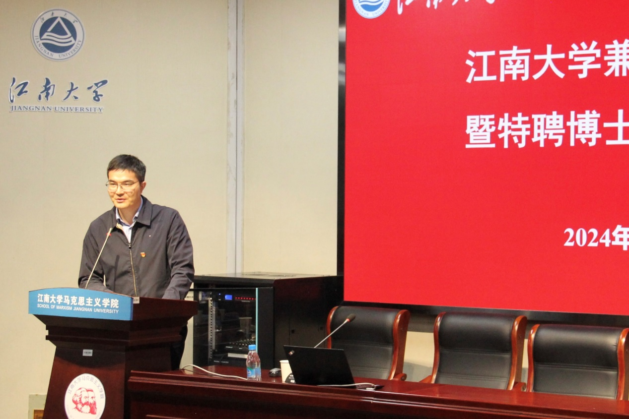 受聘仪式前桑学成教授为学院师生做了专题辅导,就深入学习贯彻习近平新时代中国特色社会主义思想的权威教材《习近平著作选读》第一卷、第二卷进行了导读。