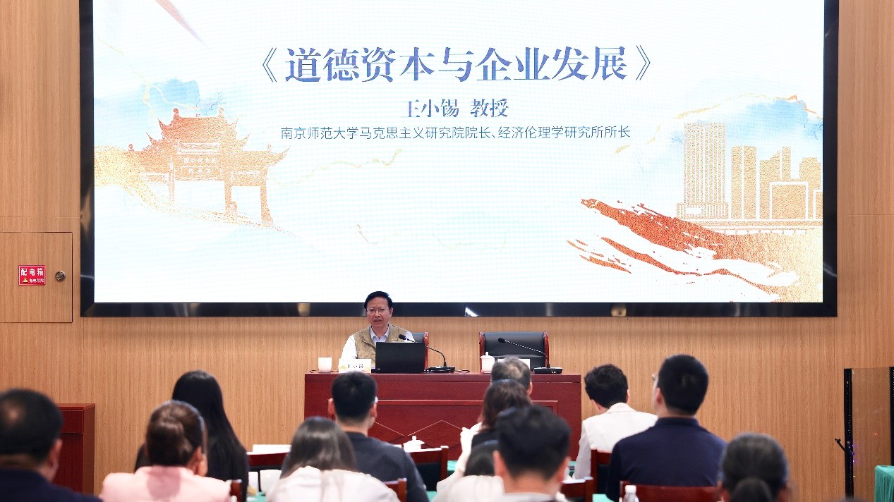6月26日下午,新时代企业家精神研究中心组织专家学者赴惠山区开展“惠聚江南 同行向新”主题活动,南京大学人文社科资深教授、商学院名誉经理、行知书院经理赵曙明教授,南京师范大学马克思主义研究院经理、经济伦理学研究所所长王小锡教授受邀出席活动并讲授主题报告,公司党委常委、统战部部长朱飞,惠山区委常委、统战部部长袁漪韬,惠山区委统战部副部长、区工商联党组书记夏振东,无锡市发展和改革委员会四级调研员刘晨,以及部分师生和企业家70余人参加活动。